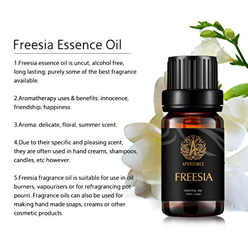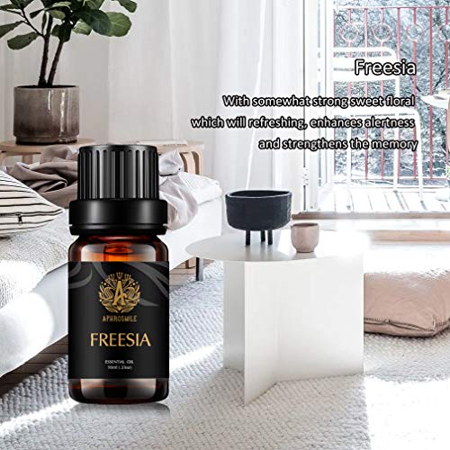 【Materiaal】 – Aphrosmile Aromatherapy Etherische oliën Freesia Geur wordt gewonnen uit Freesia met behulp van de beste extractietechnologie, die 100% natuurlijke pure, onvervalste, therapeutische kwaliteit essentiële oliën is.
